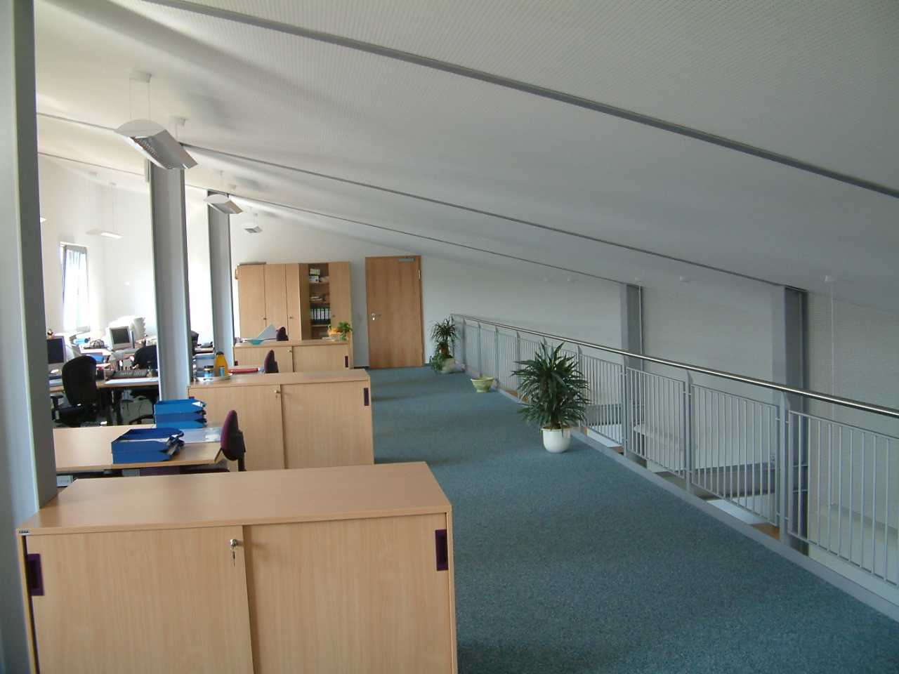 Offenes Büro im Dachgeschoss mit Sichtkontakt zum Erdgeschoss