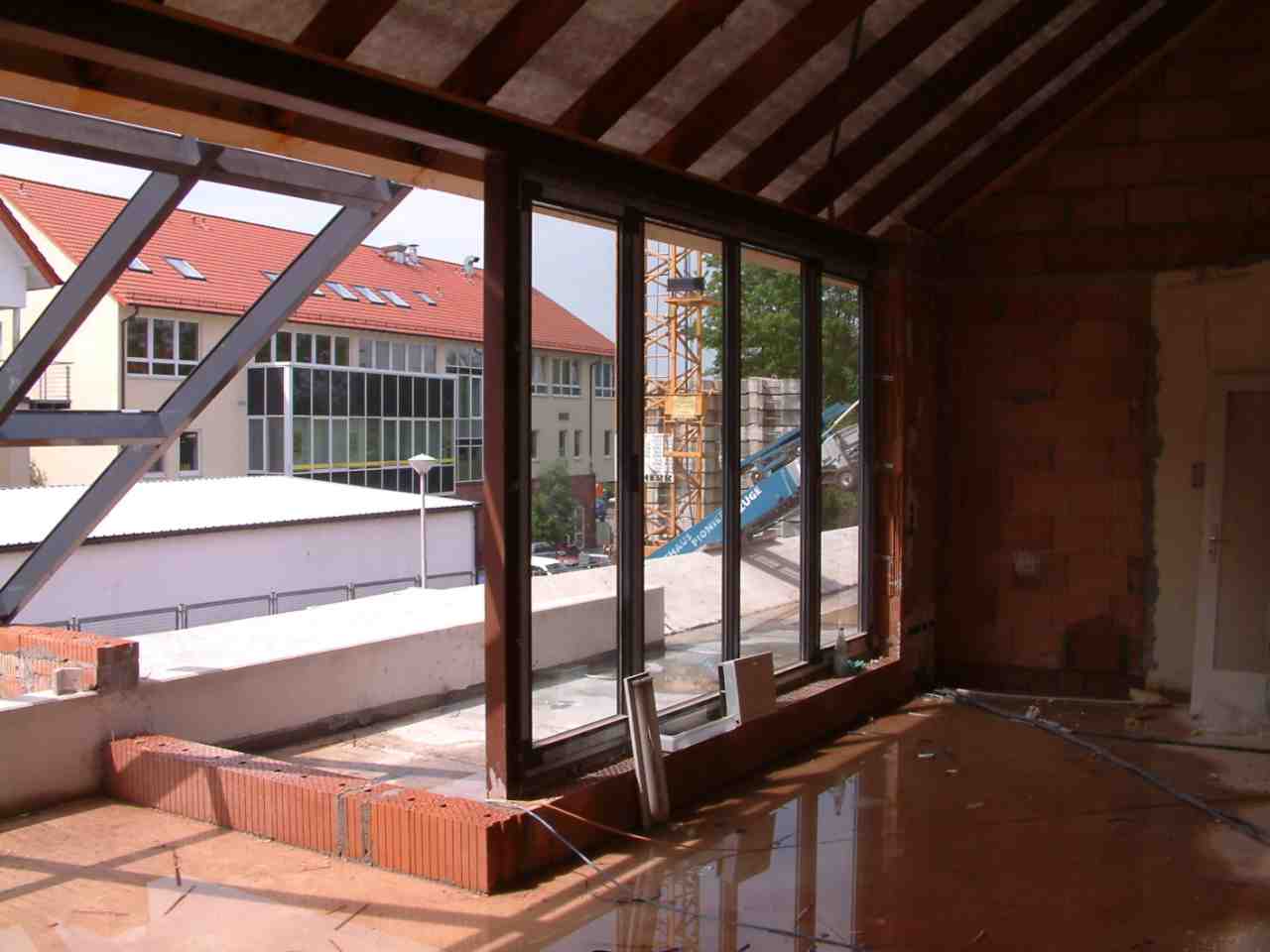 Montage der Fassade und der Fenster