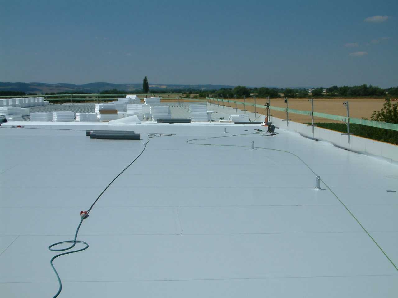 Aufbau der Dämmung auf dem Trapezblech alles wird mit der Abdichtung verschraubt und sturmgesichert