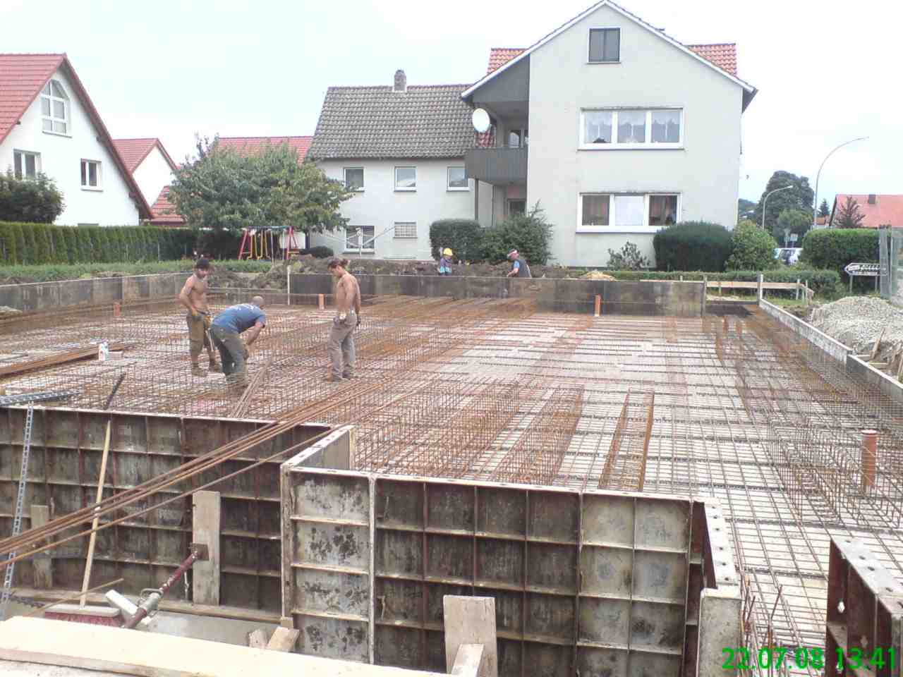 Die Verlegung der Stahlbewehrung für die belastete Betonsohle ist etwas für Männer von besonderem Format