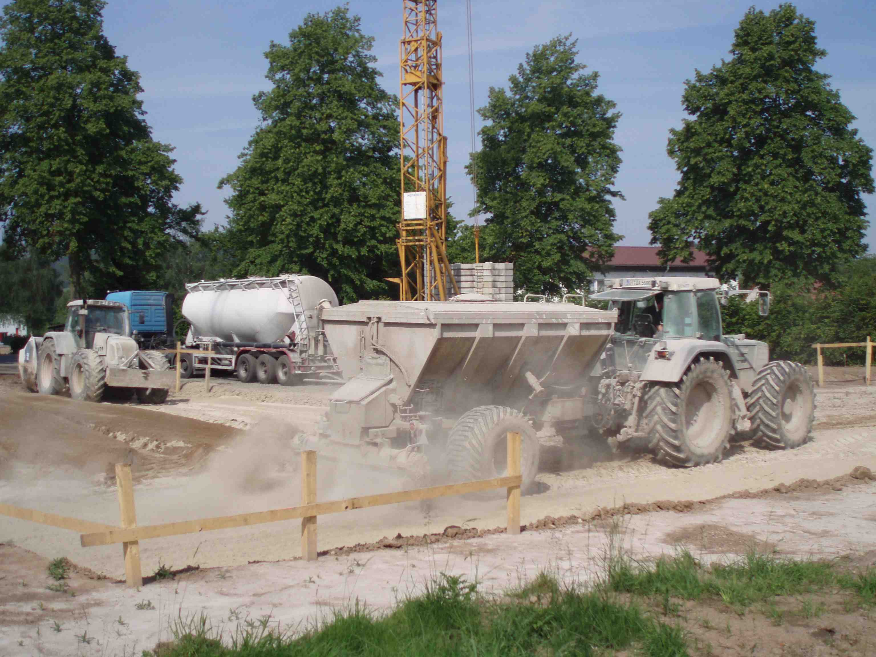 Der Boden verfügte über eine verminderte Tragfähigkeit Deshalb wurde eine etwa 50 cm mächtige Bodenschicht mit Brandkalk vermischt und anschließend verdichtet