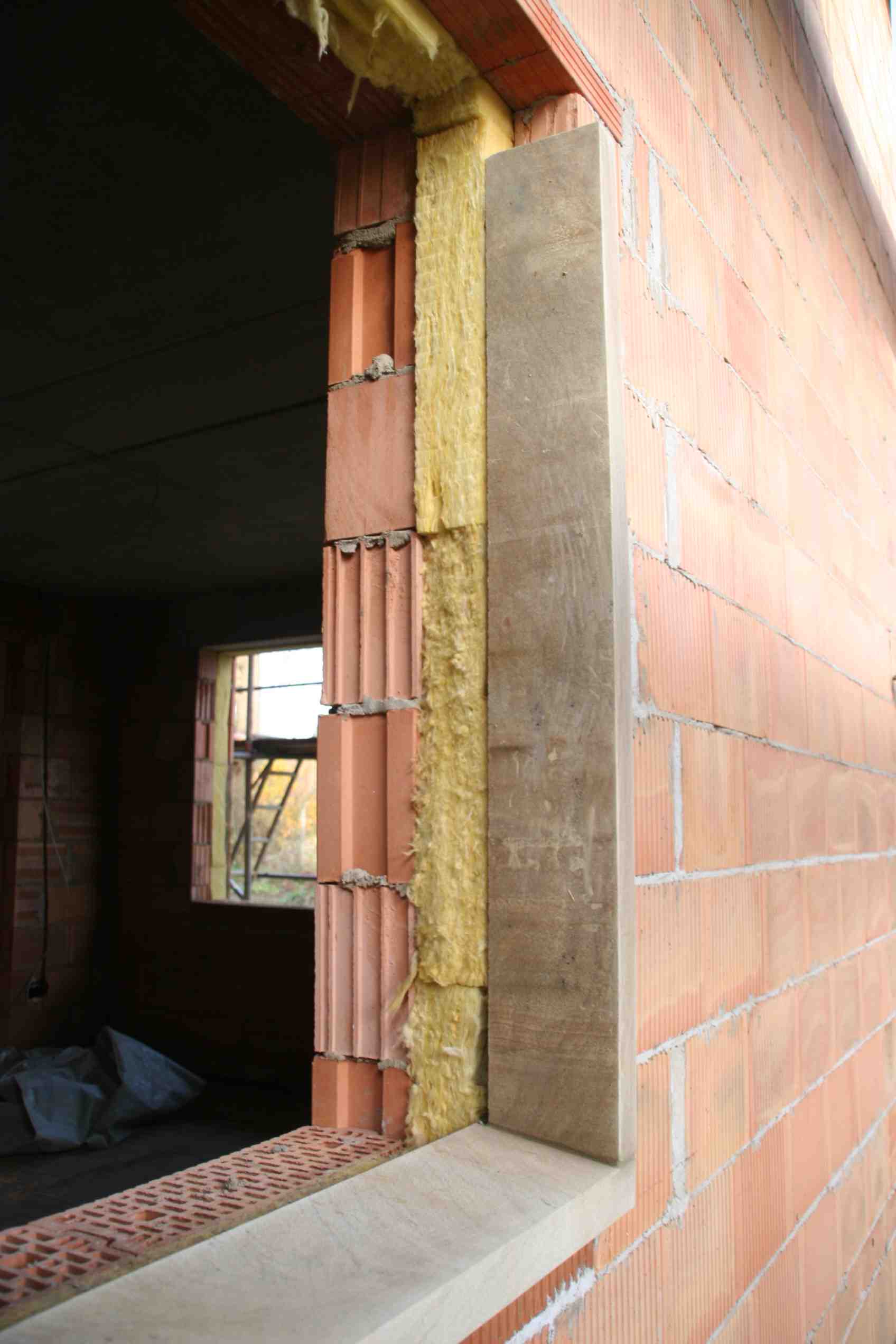Montage der Gesimse aus Sandstein für die Einfassung der Fenster