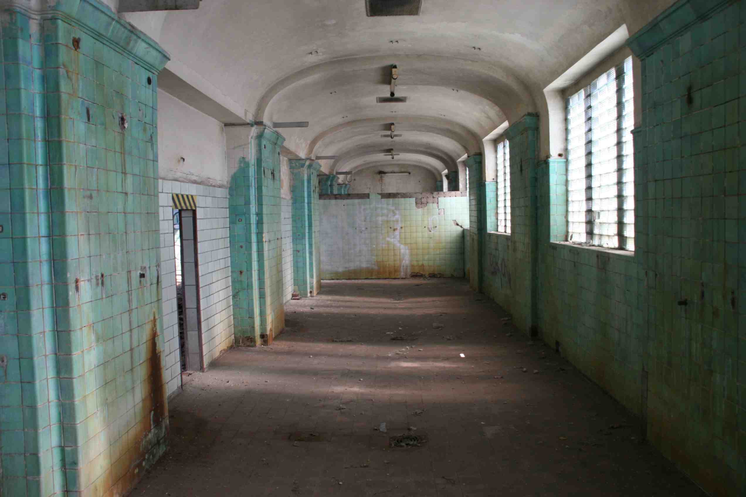 Ehemaliger Duschbereich in den Seitenflügeln der Waschkaue