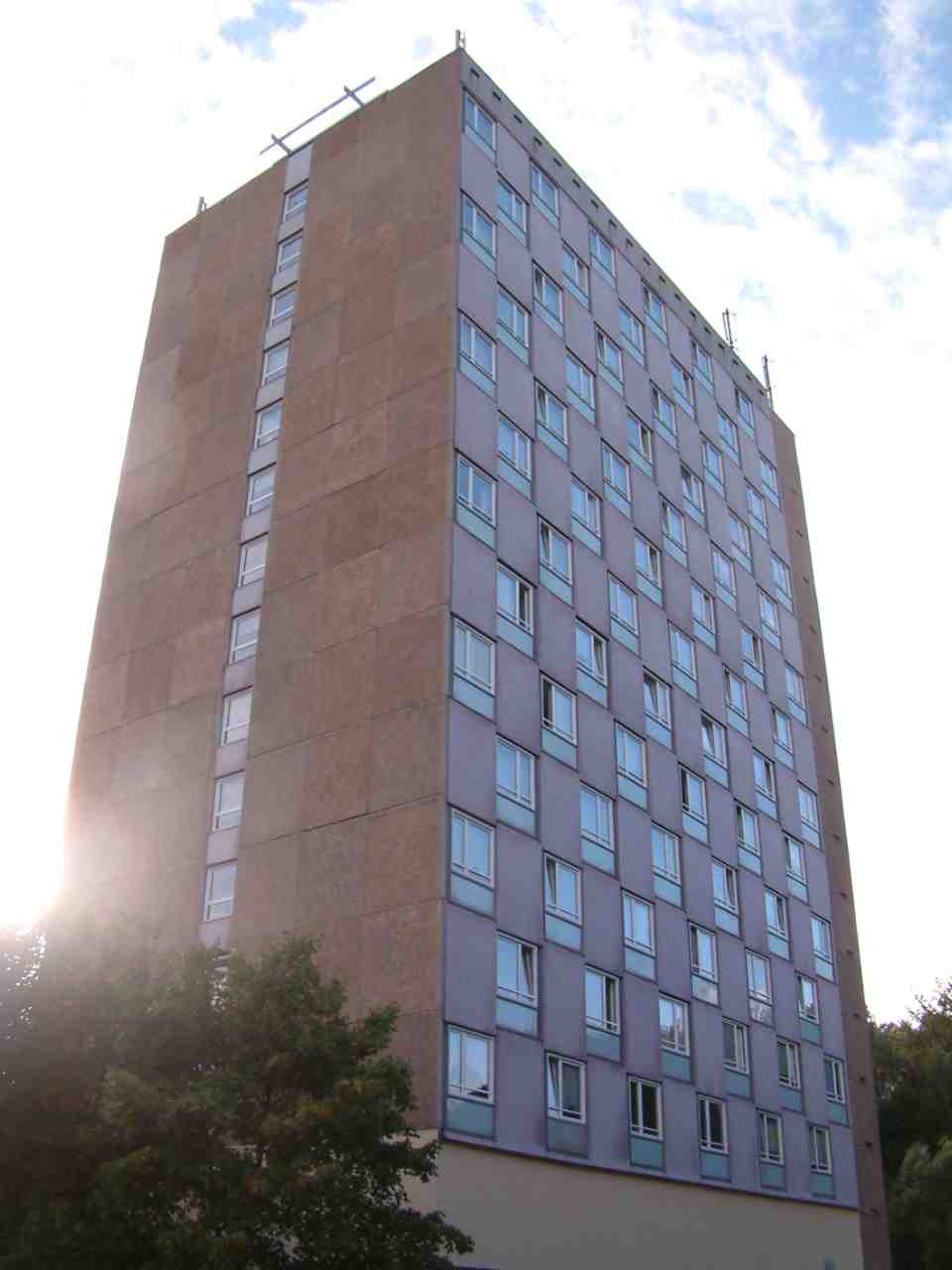 1 Ebene im Erdgeschoss 1 Ebene für Abstellräume 13 Wohnebenen 1 Ebene für Haustechnik Fassade aus Waschbetontafeln, Metallblech, und Glas So zeigte sich die Substanz bei der Analyse