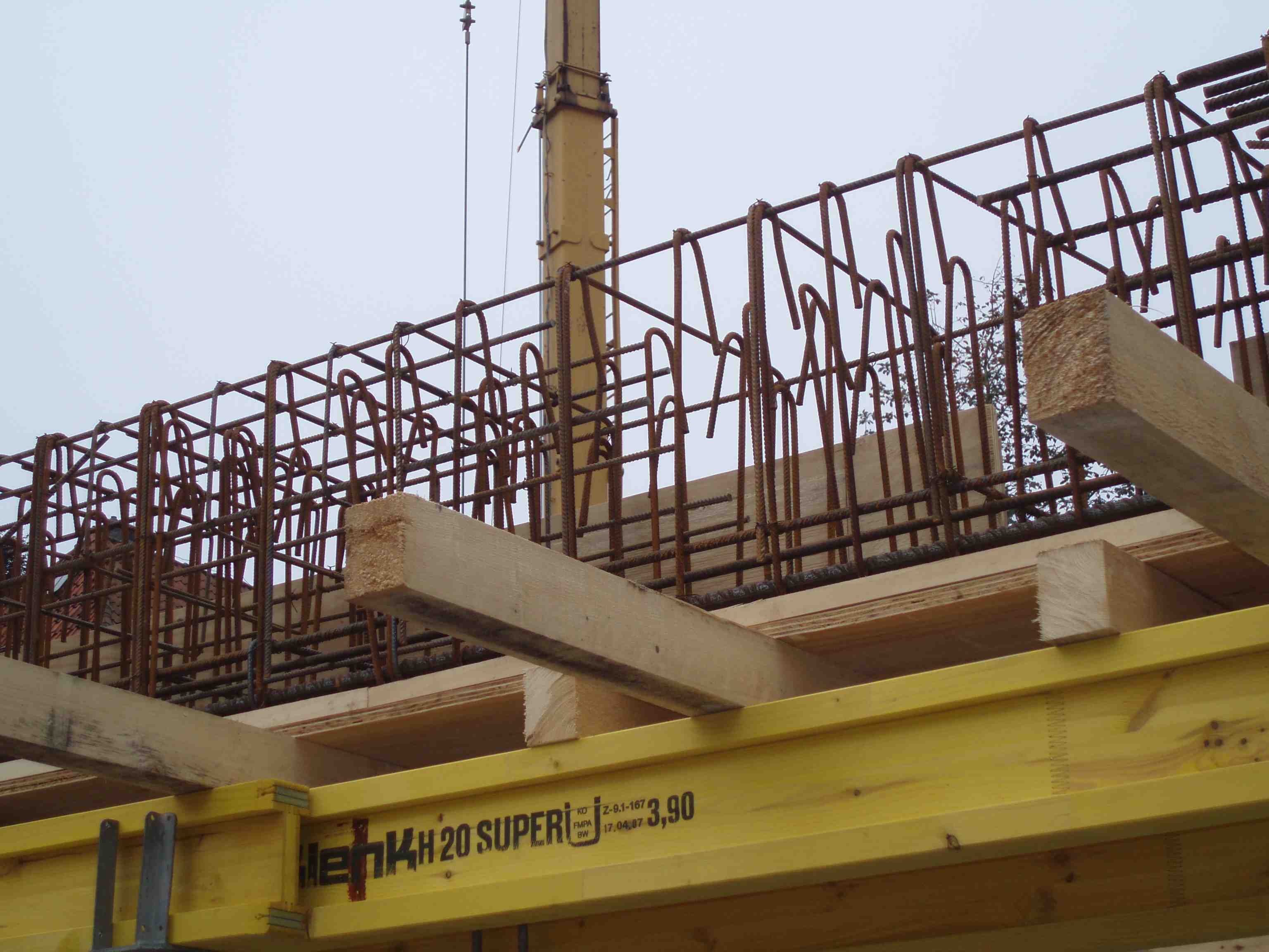 Die Unterschalung sowie die Bewehrung eines Unterzugs der Tiefgarage